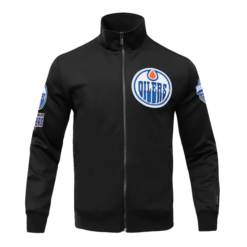 NHL EDMONTON OILERS CLASSIC CHENILLE MEN’S DOUBLE KNIT TRACK JACKET (BLACK)