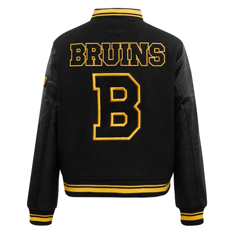 NHL BOSTON BRUINS RETRO CLASSIC WOMEN’S RIB WOOL VARSITY JACKET (BLACK\/YELLOW)