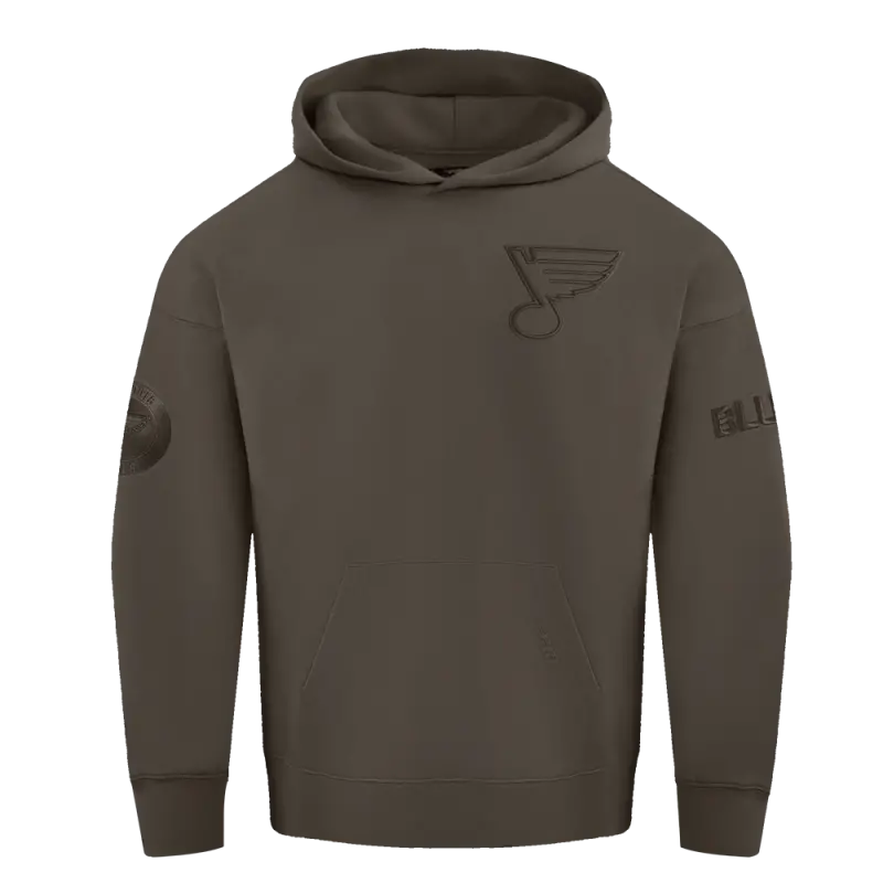 NHL ST. LOUIS BLUES NEUTRAL MEN’S DROP SHOULDER PULLOVER HOODIE (DARK TAUPE)